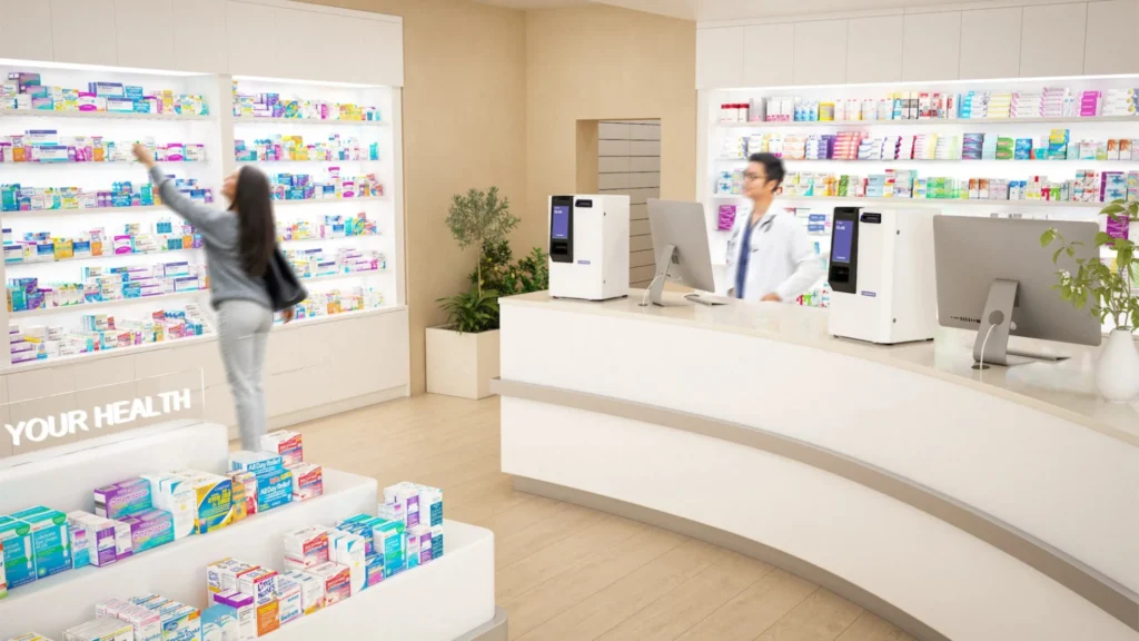 Caisses automatiques pour les pharmacies, parapharmacies et herboristeries. Réduisez le contact avec les espèces et gagnez en efficacité à chaque transaction.